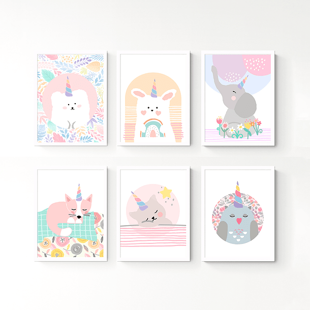 Maravilloso Cuadro perteneciente a la serie "Unicornios Cute". Diseño único y original de Decoración Pajarito. Revisa el resto de los productos y arma un set inigualable!